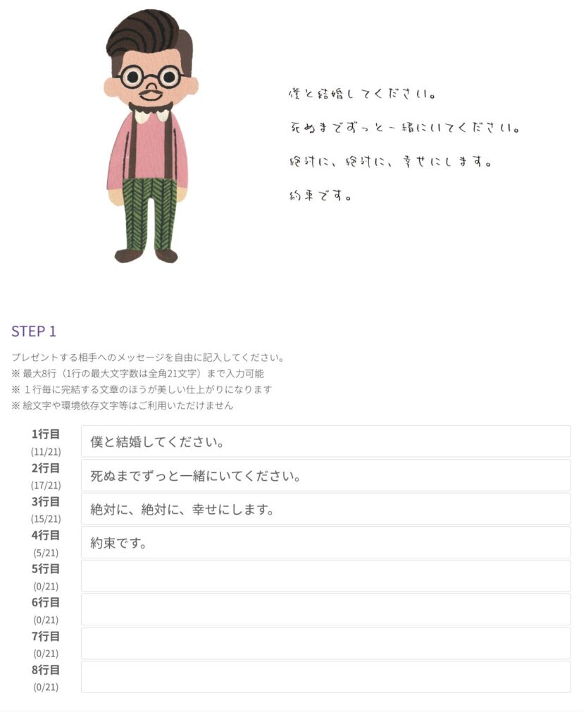 アバター形式で、あなた自身と贈る相手の顔をそっくりに作成します。